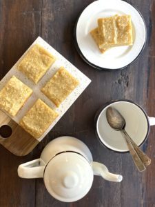 Sacar del horno y dejar enfriar por completo. Cortar en cuadrados.
