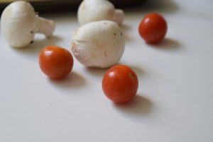 " 6 champiñones limpios y cortados a la mitad