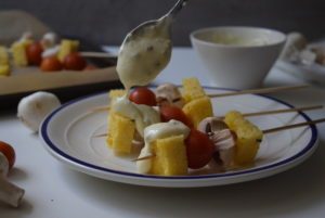 Brochetas de polenta con verduras