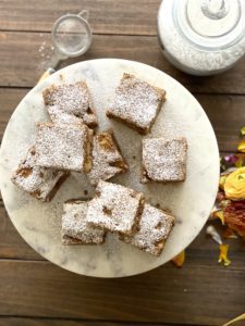 Pelar las manzanas y cortar en cuadrados, agregar la mezcla anterior de manera envolvente y a la fuente que vas a llevar al horno por 40 minutos, tiene que salir el palito seco. Dejar enfriar y cortar en cuadrados.