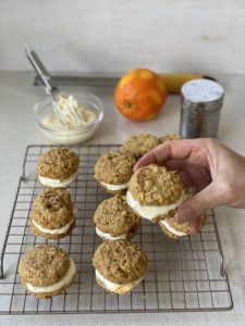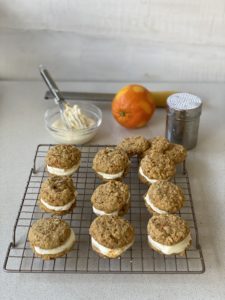 Sandwich de galletas con carrot cake y relleno de queso crema con yogurt