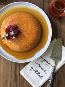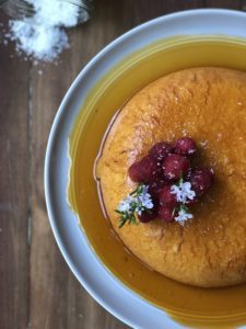 Desmoldar, servir con frambuesas y mucho caramelo.