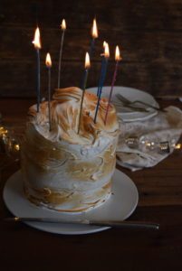Agregar el merengue por todo el bizcocho, con un soplete dorarlo.