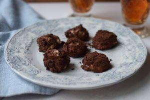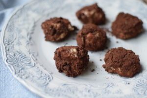 Con una cuchara tomar una porción y pasarla por el chocolate amargo, si no las vas a servir de inmediato dejarlas en el refrigerador.